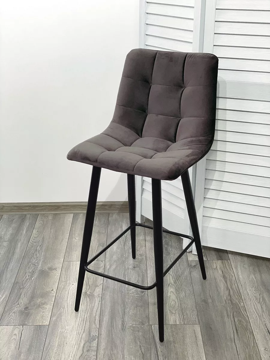 Полубарный стул CHILLI-QB графит #14, велюр / черный каркас (H=66cm) М-City