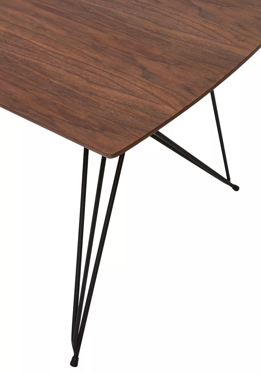 Нераскладной стол на стильной металлической конструкции, комбинированной с массивом дерева.