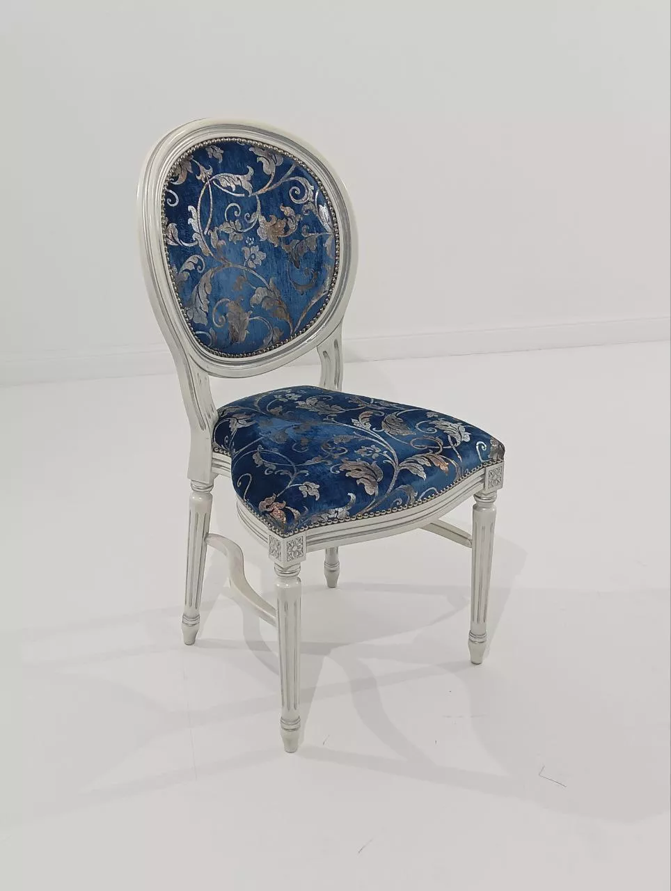 3246/SR Стул, P66 белый с патиной и серебряными деталями / ткань UPH GENE 3057 LIGHT BLUE СКИДКА 50%