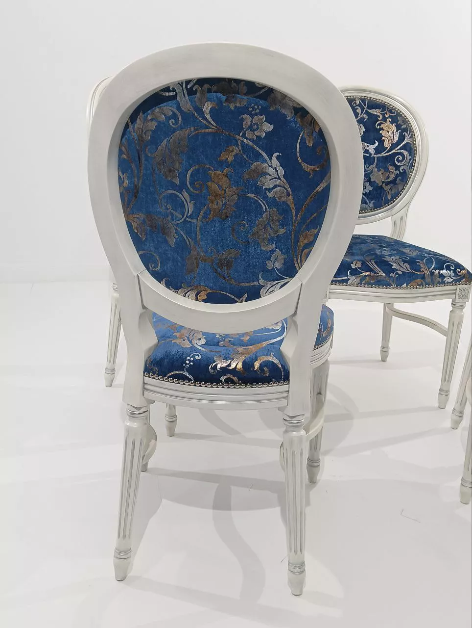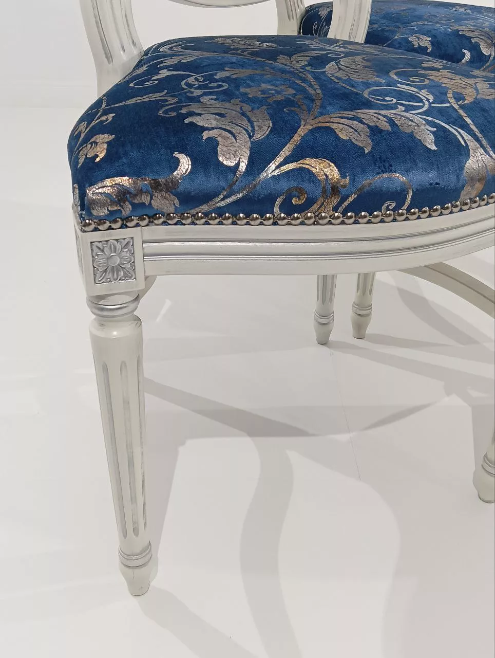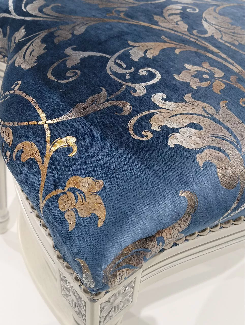 3246/SR Стул, P66 белый с патиной и серебряными деталями / ткань UPH GENE 3057 LIGHT BLUE СКИДКА 50%