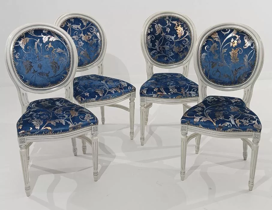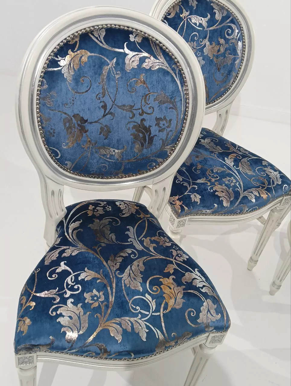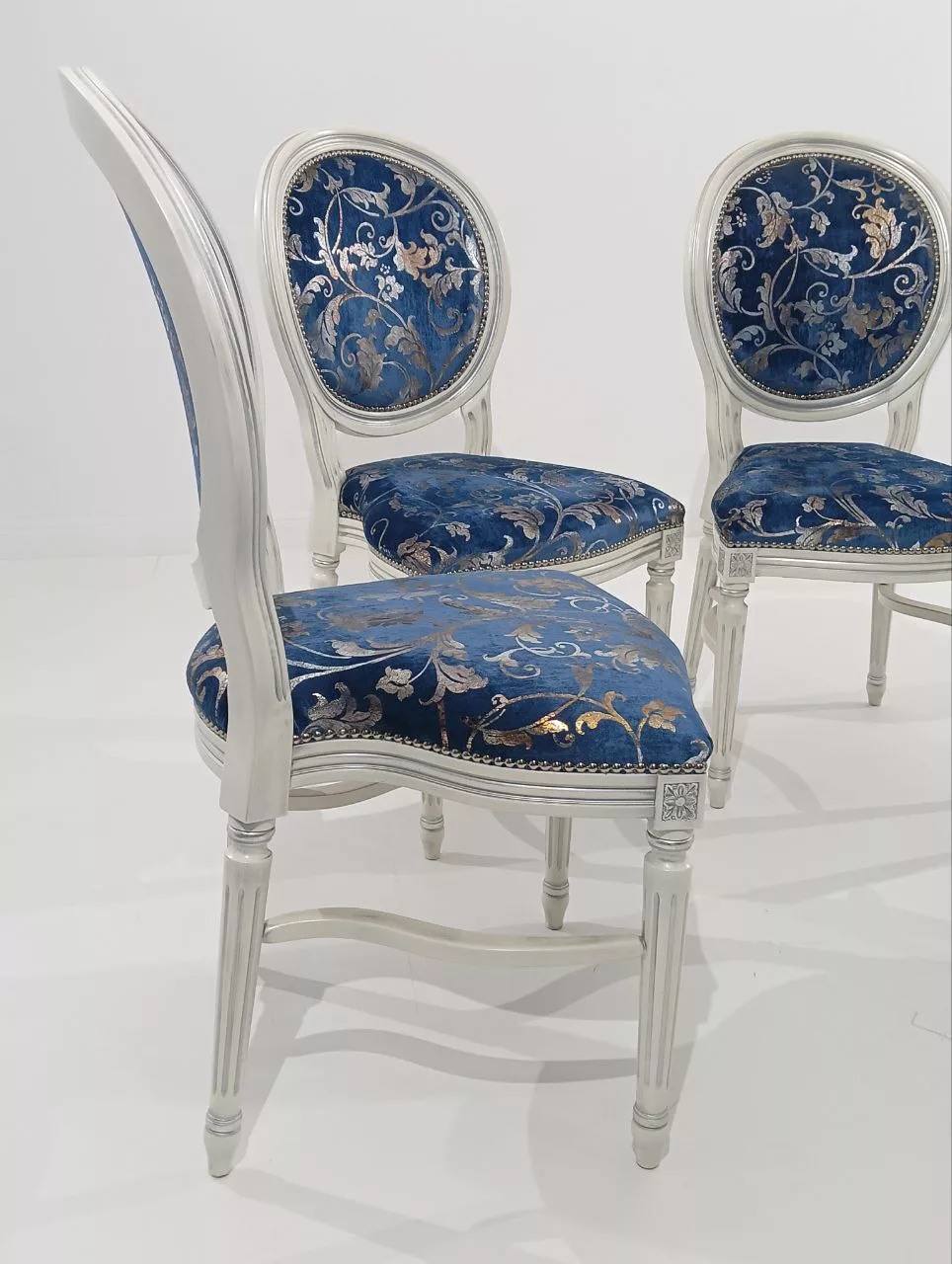 3246/SR Стул, P66 белый с патиной и серебряными деталями / ткань UPH GENE 3057 LIGHT BLUE СКИДКА 50%