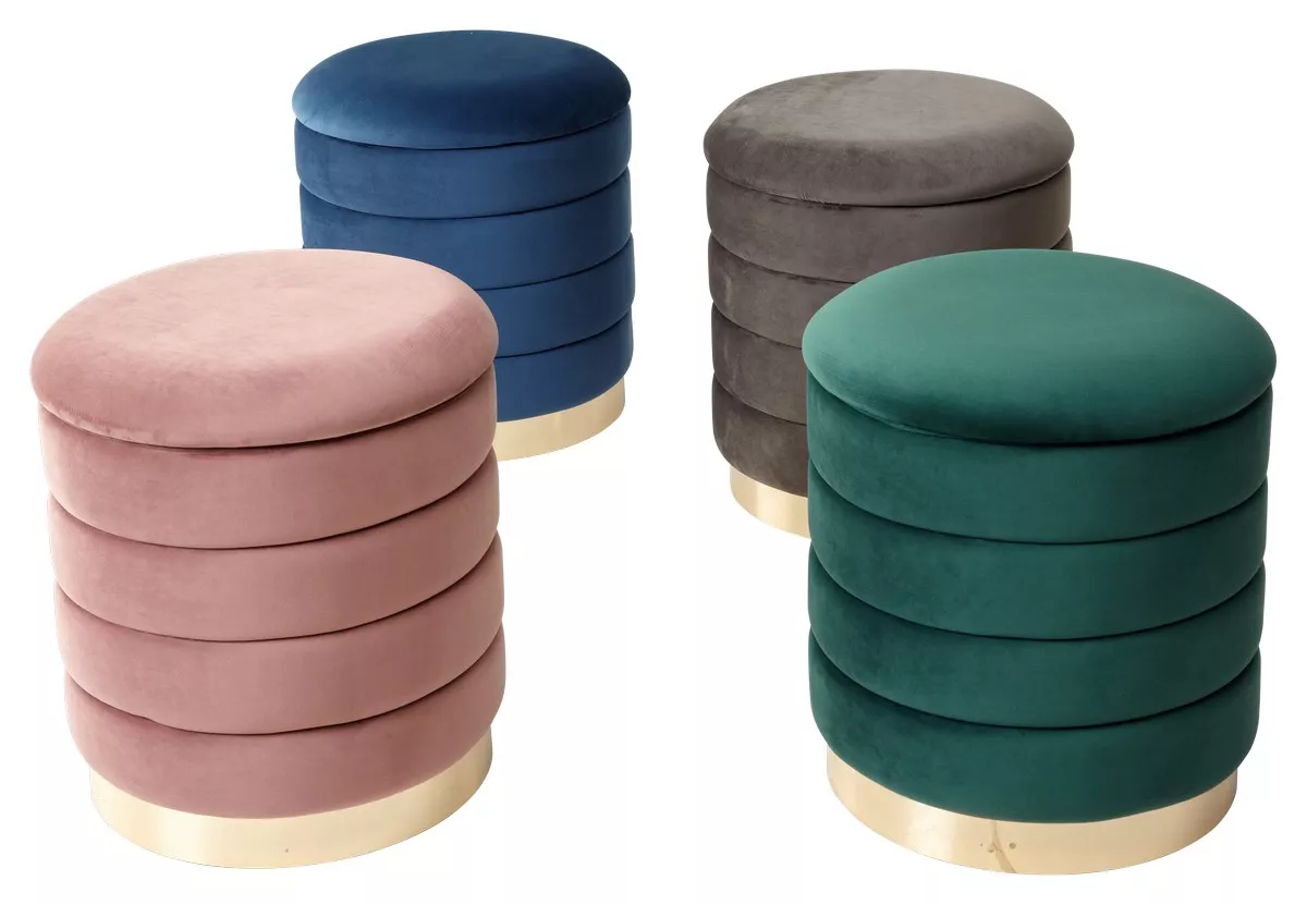 Пуф с ящиком для хранения. Ткань - велюр серии Barkhat-M. База - пластик, цвет золотой. |
