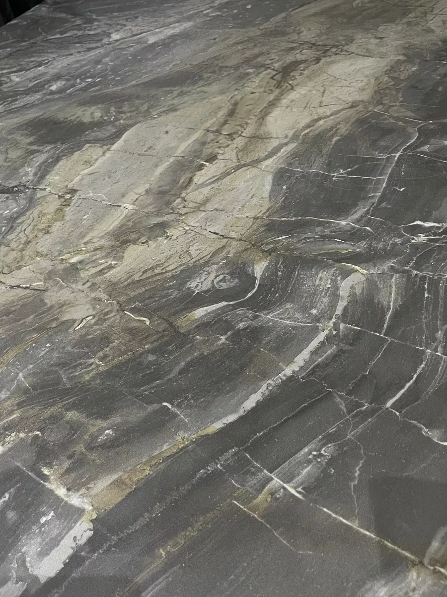 Стол IVAR 180 итальянская керамика на стекле в цвете серо-коричневый мрамор