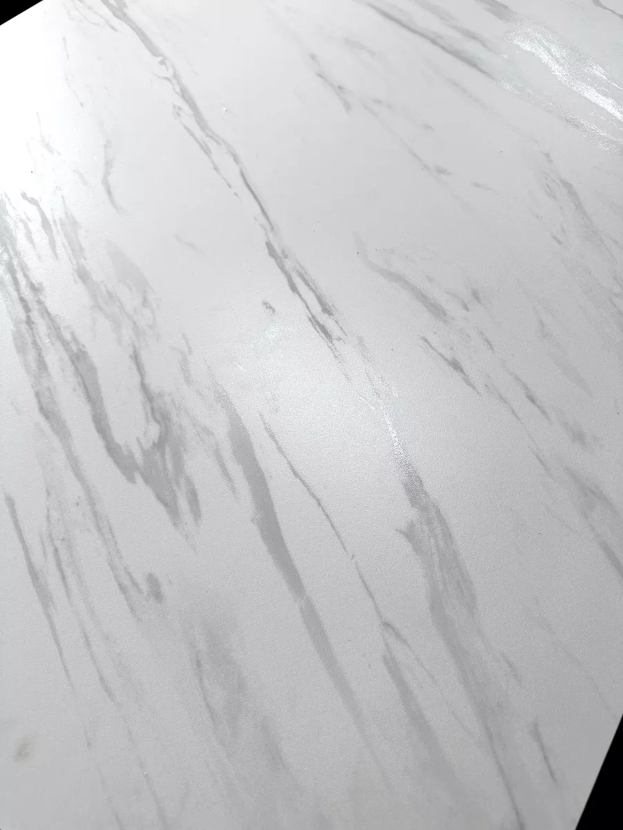 - итальянская матовая керамика в цвете белый мрамор с отражающими свет прожилками, толщина столешницы 13 мм (3 мм керамика + 10 мм стекло), не царапается, не впитывает загрязнения, термостойкая;