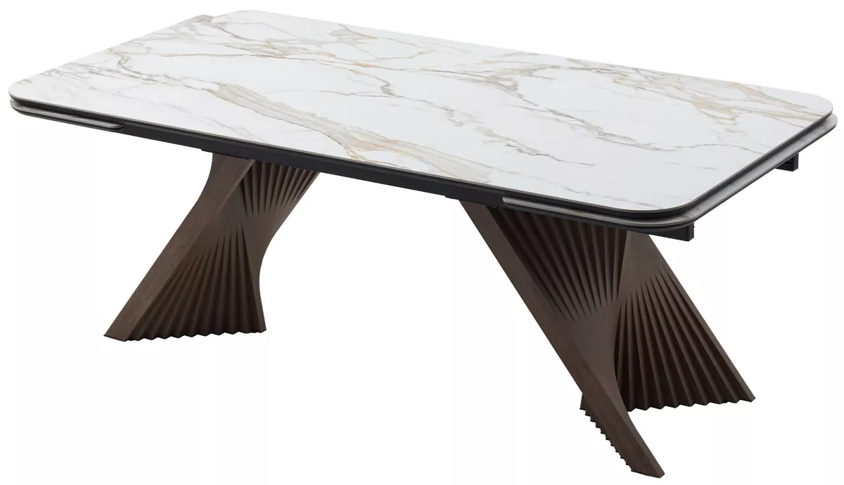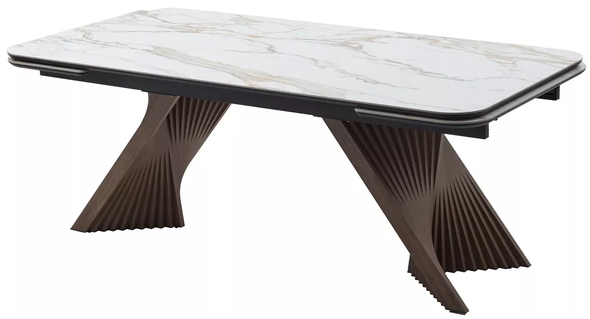Стол МАНХЭТТЕН 200 цвет СВЕТЛЫЙ БЕЖ ( DRAC COLD XLIM), керамика / Орех Карни натуральный