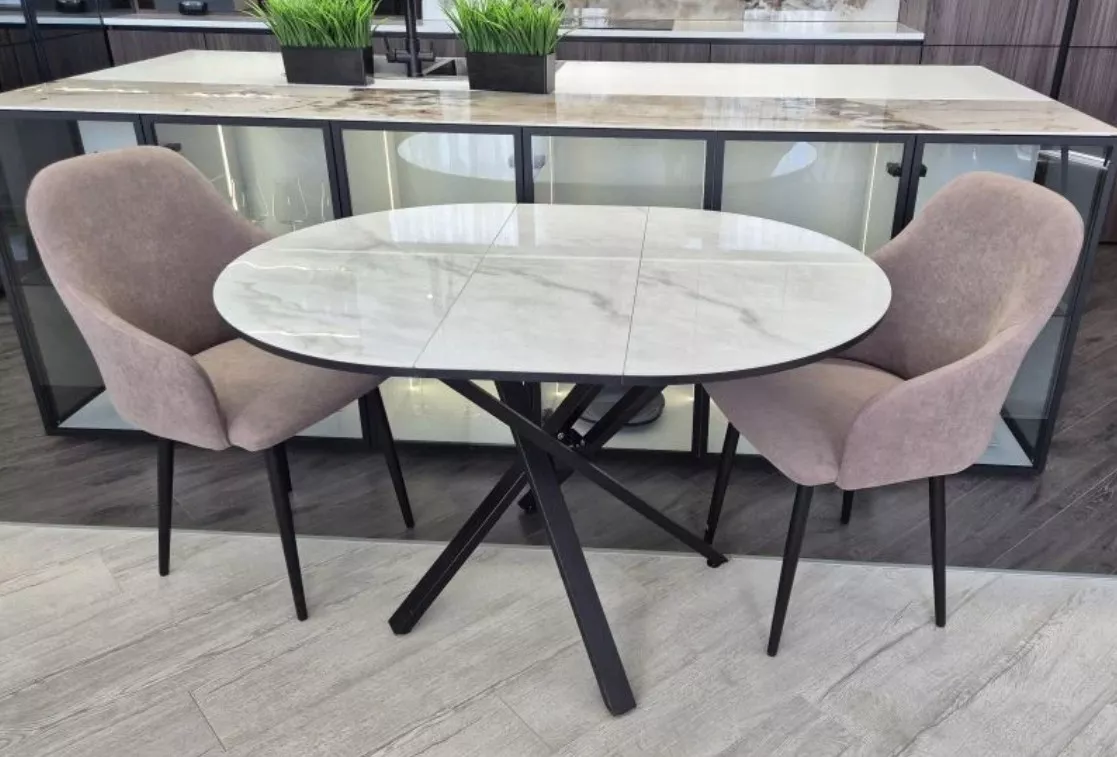 Стол СТЮАРТ D90 цвет БЕЛЫЙ МРАМОР С ПРОЖИЛКАМИ ЛАТТЕ глянцевый с керамической столешницей