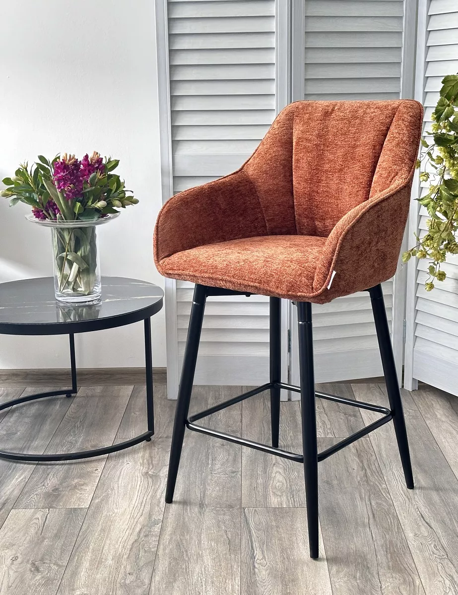 Полубарный стул ERYK 180 град. поворот. 3018-09 терракотовый, шенилл / черный каркас (H=67)