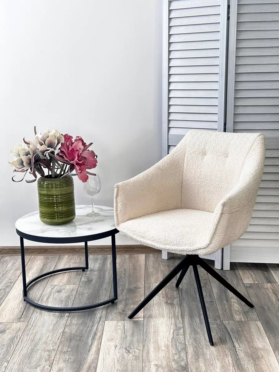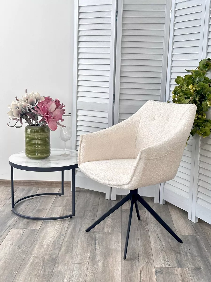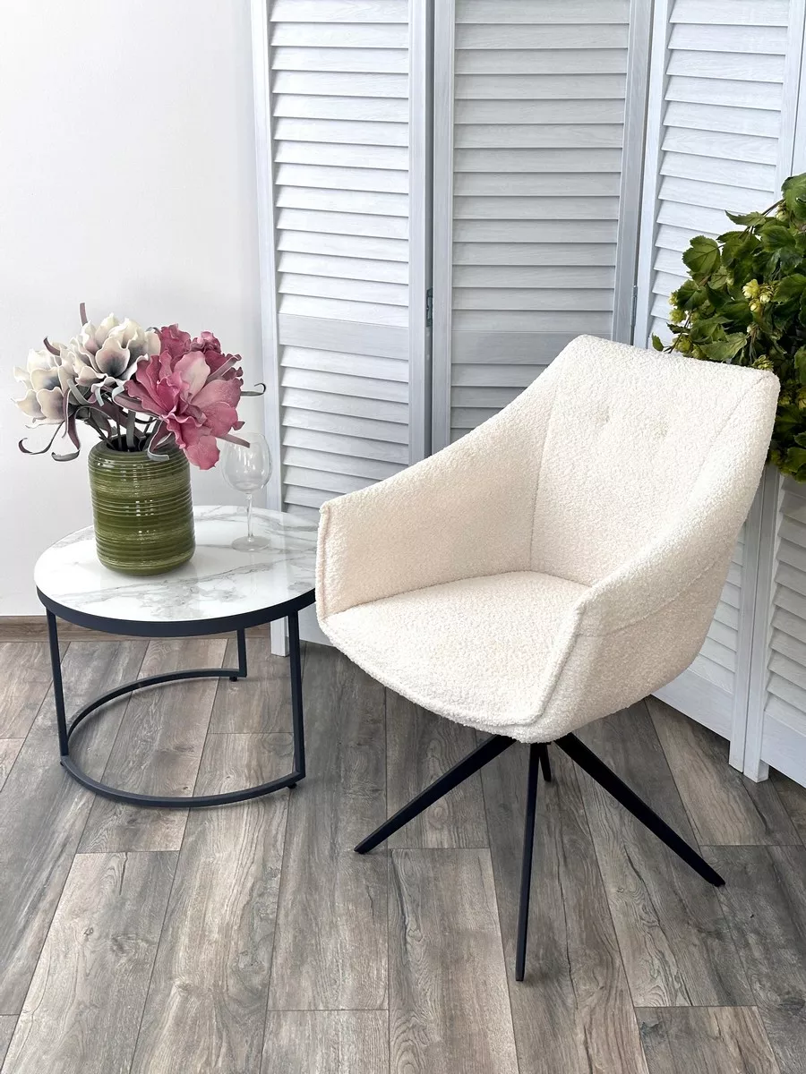 Стул КЛАУДС (CLOUDS) 360 град. поворот. Белый Wales 101, букле/ черный каркас / Товарный знак DISAUR