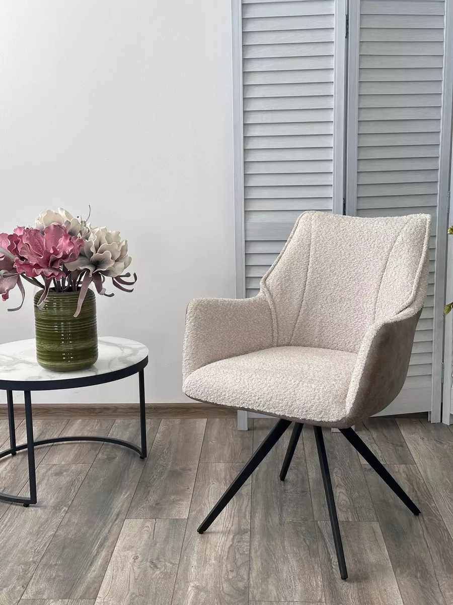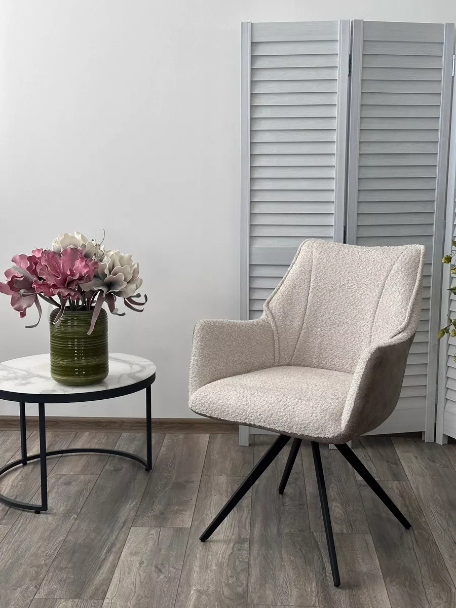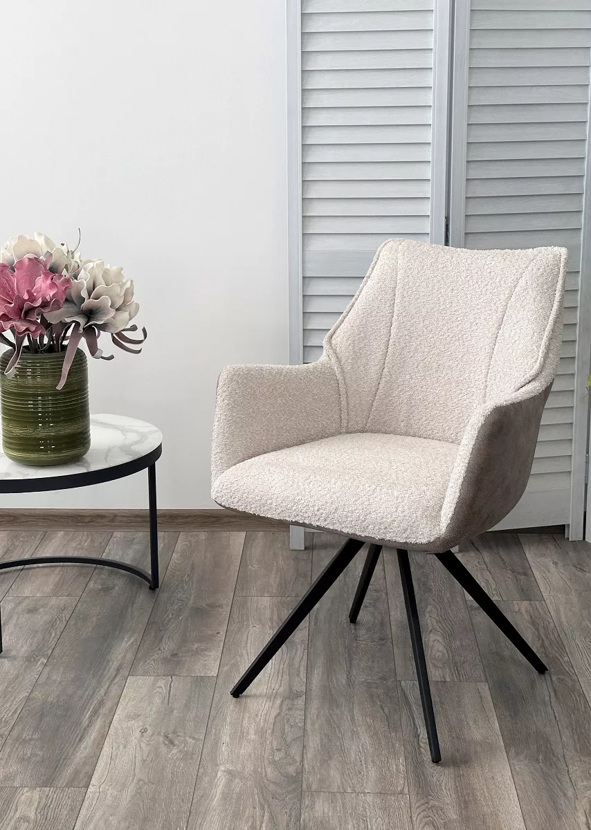 Стул БРЕВИС (BREVIS) 180 град. поворот. 841-02 Бежевый, букле/ 101 Бежевый, ткань/ Черный, ®DISAUR