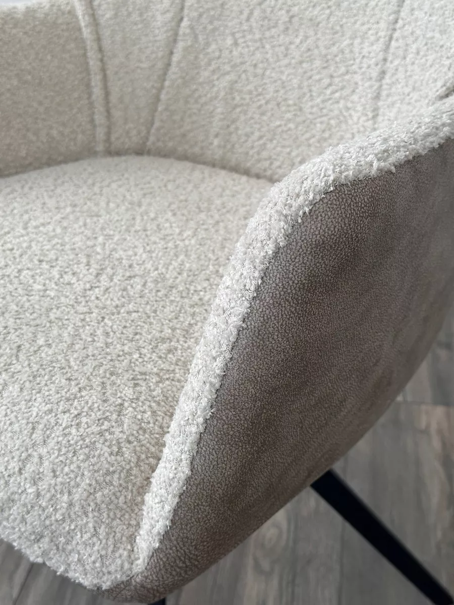 Комбинированная обивка сиденья, лицевая сторона - букле, наружная сторона - ткань.