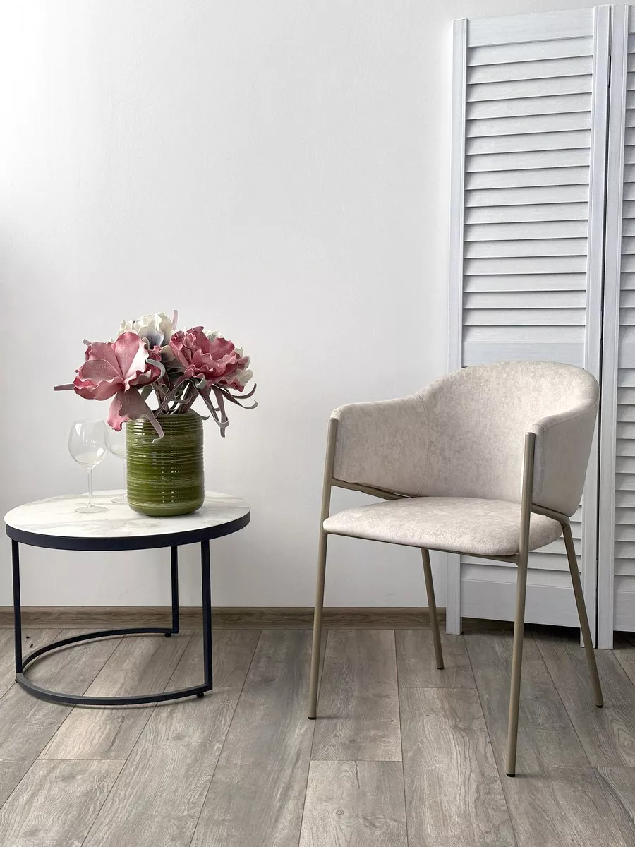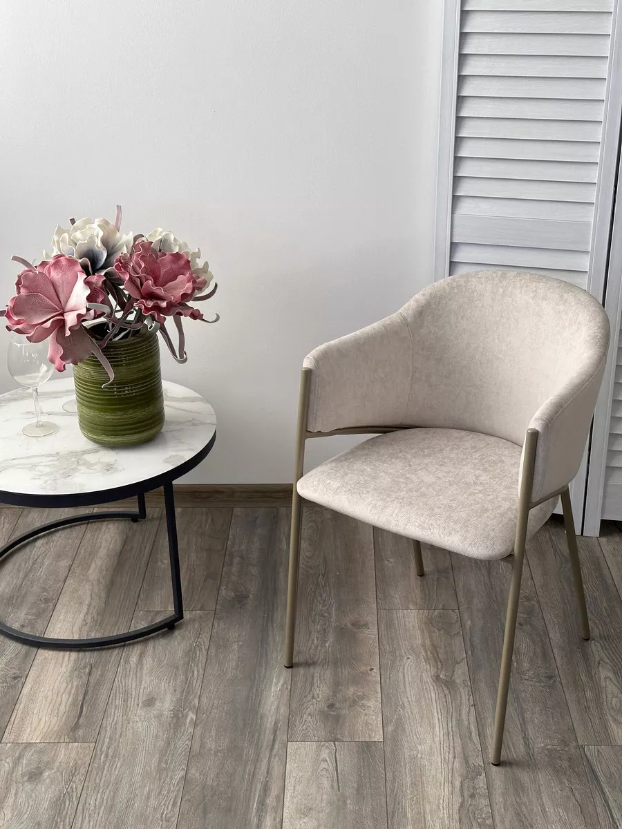 Стул ДИЛЛ, цвет RAIN 8 слоновая кость, велюр / шампань каркас М-City