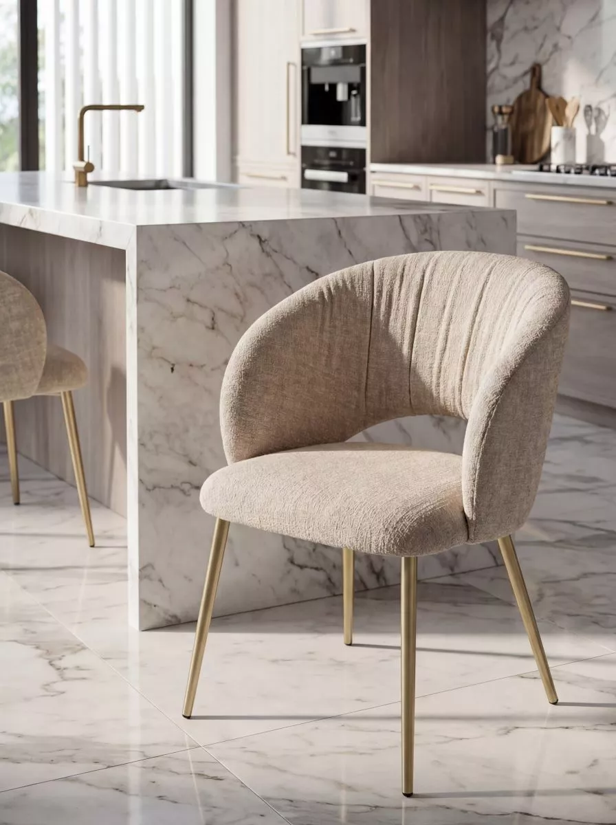 Коллекция ВЕСНА 2026. Обивка - ткань, каркас - металл в цвете шампань. |