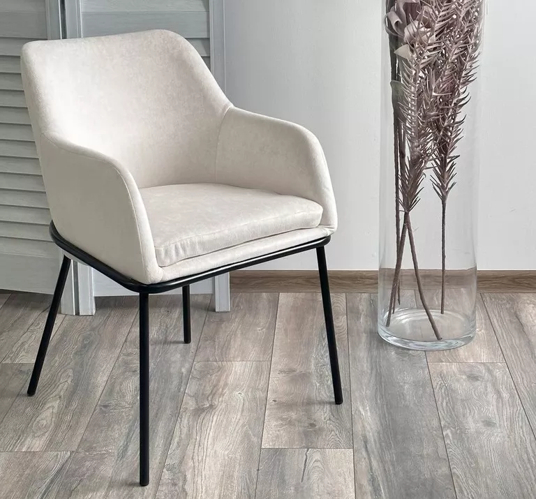 Стул АЛИСТЕР, цвет RAIN 1 молочный велюр / черный каркас