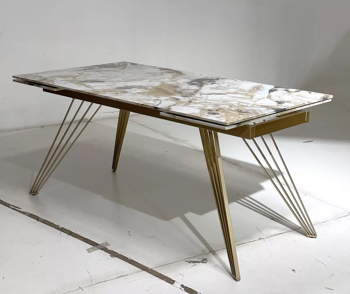 Стол ACERRA NEW 160 GLOSS GRAND JADE SOLID CERAMIC/ каркас цвета шампань, ®DISAUR, Стол ACERRA NEW 160 GLOSS LUXURY PANDORA SOLID CERAMIC/ каркас цвета шампань, ®DISAUR |