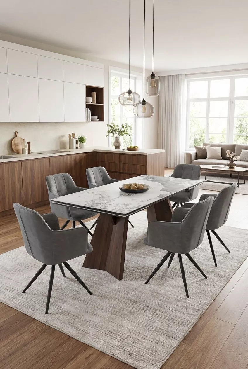 Стол БРИАН (BRIAN) 200 ЦВЕТ ПАНДОРА (MATTE PANDORA) керамика на стекле/ ОРЕХ, ®DISAUR