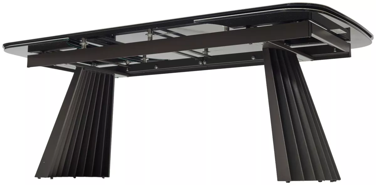 - двухсторонняя торцевая система раскладывания, две независимые вставки по 50 см позволяют увеличить длину столешницы на 250 см и 300 см при необходимости;