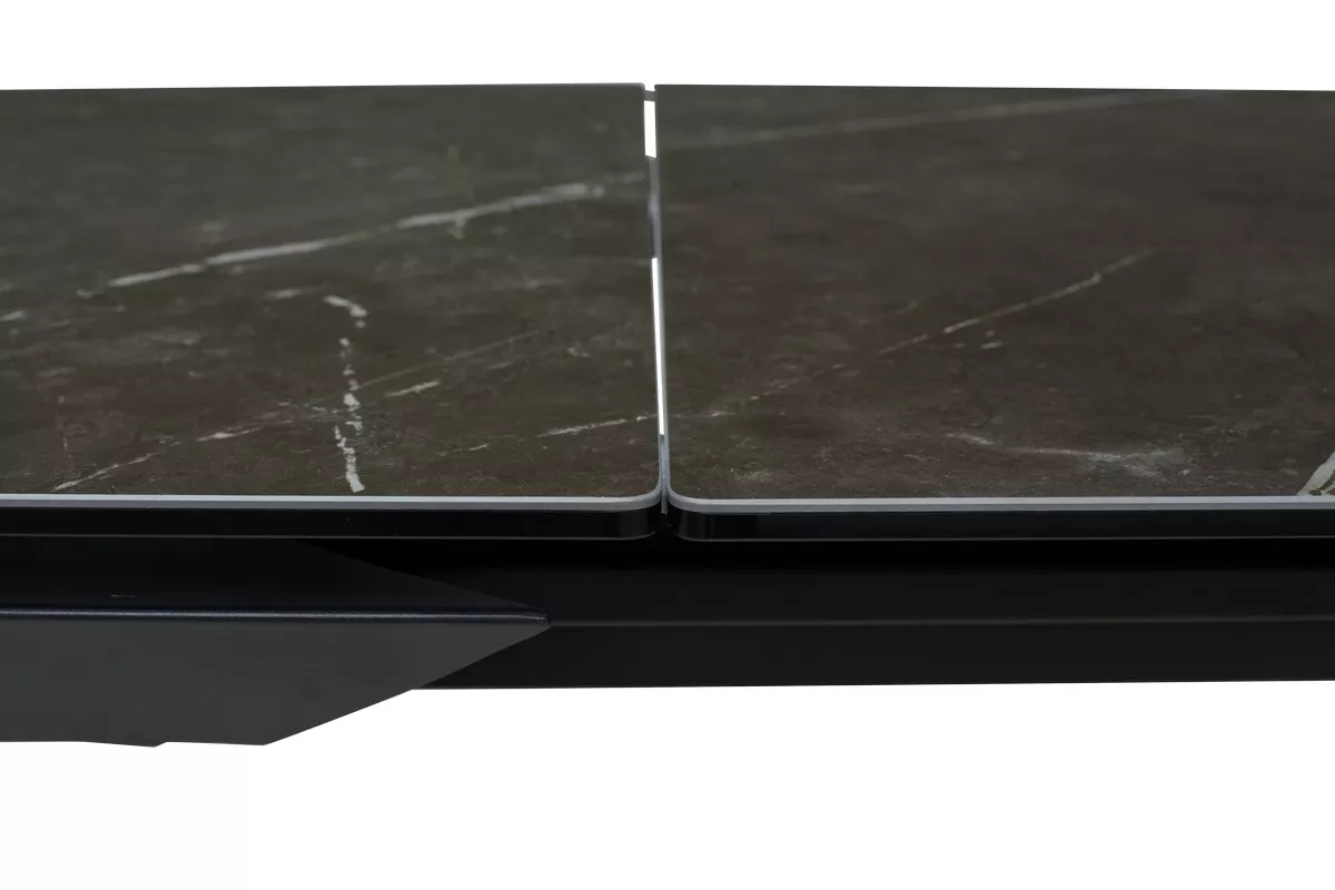 Стол CREMONA с итальянской матовой керамической столешницей цвета "черный мрамор" на черном каркасе