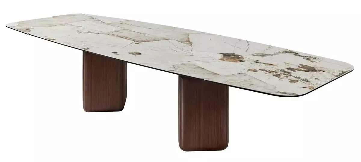 - двухсторонняя торцевая система раскладывания, две независимые вставки по краям по 60 см позволяют увеличить длину столешницы до 300 или 360 см при необходимости, испанская керамика, толщина столешницы 13 мм (3 мм керамика + 10 мм закаленное стекло), не впитывает загрязнения, термостойкая;