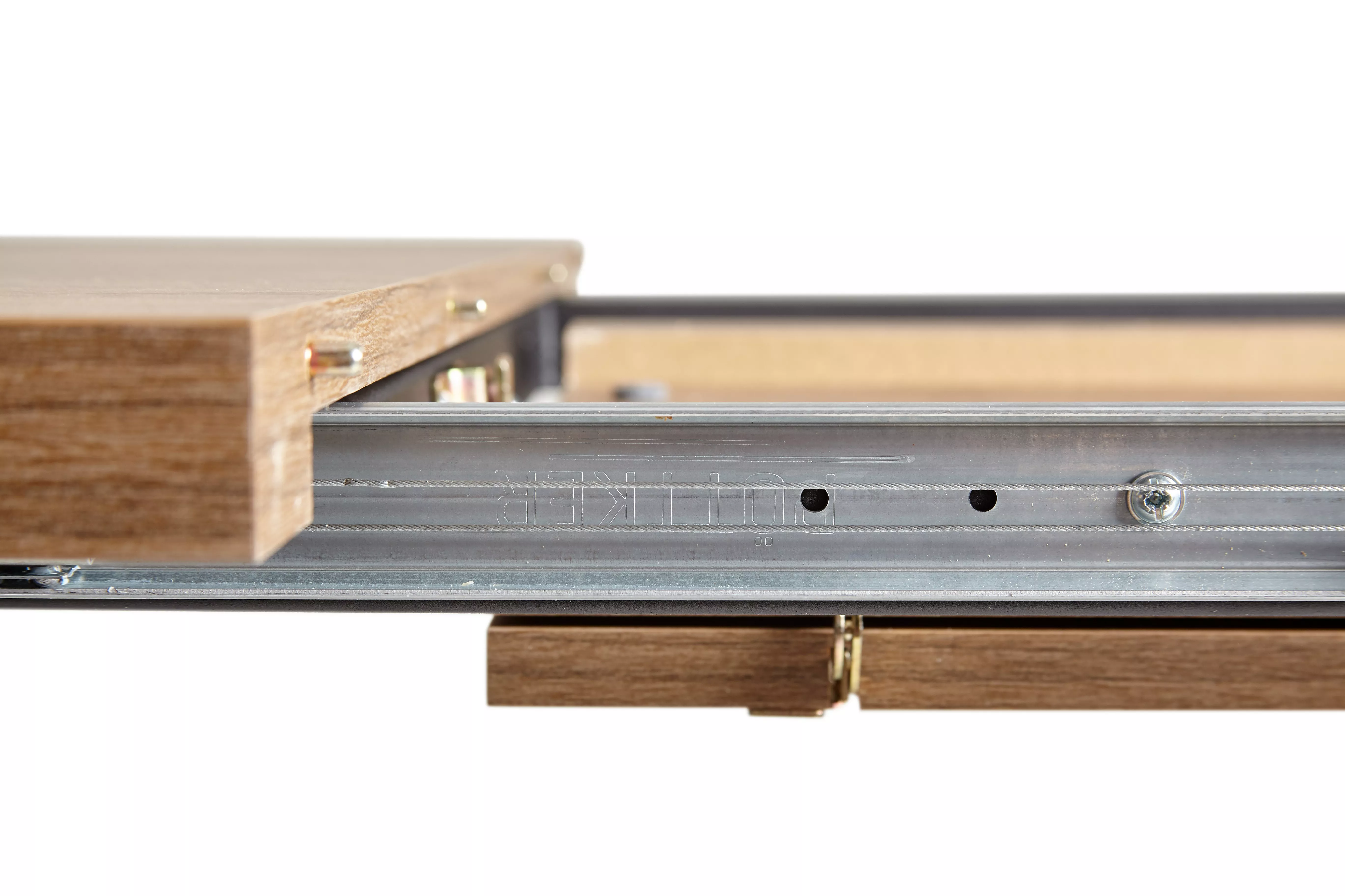 Столешница - ламинированный ДСП. Толщина столешницы 35 мм по бортикам, 18 мм - по центру. Немецкий механизм раскладывания POTTKER. Металлическая рама под столешницей. Ножки стола крепятся к металлической раме,