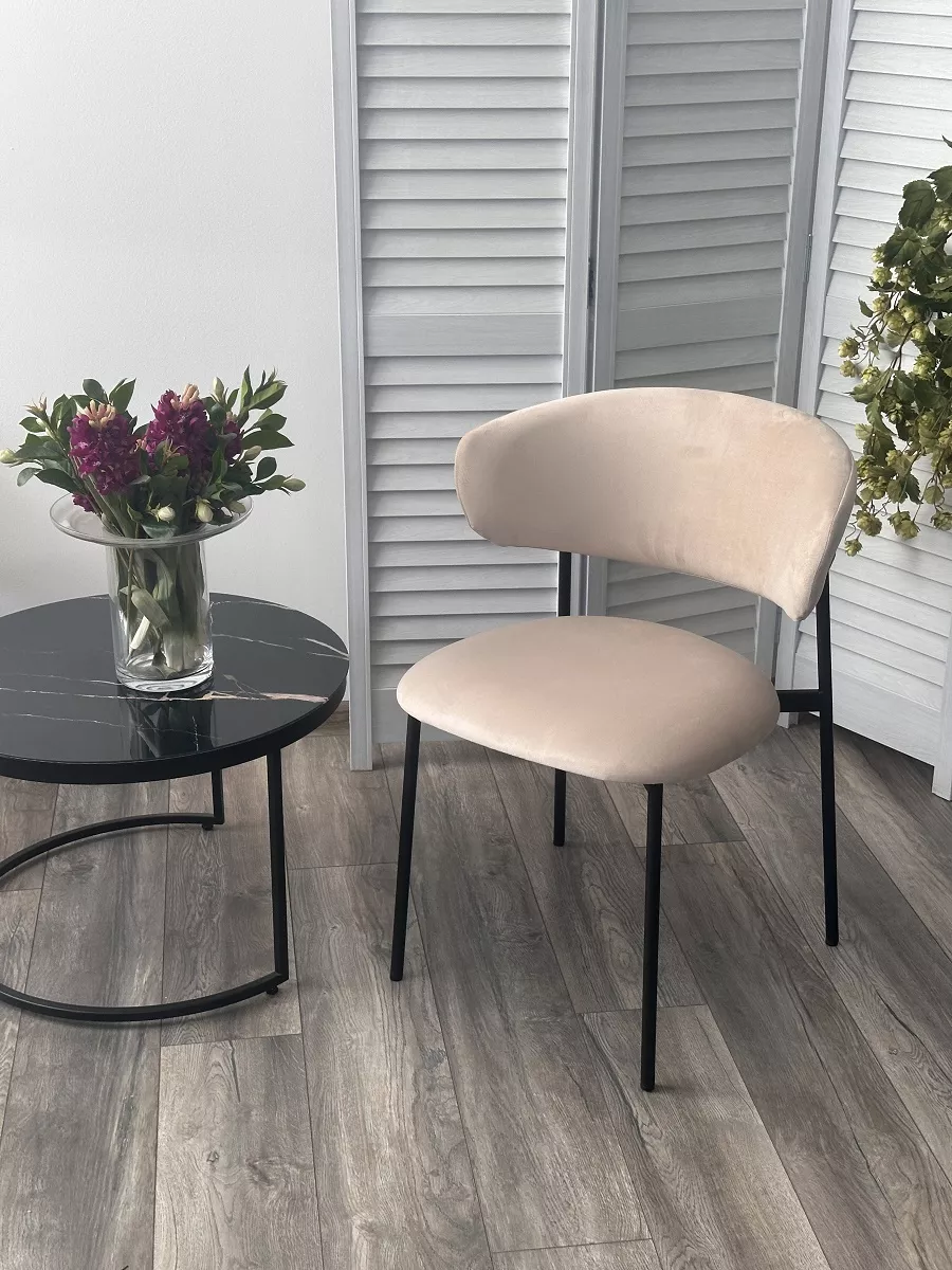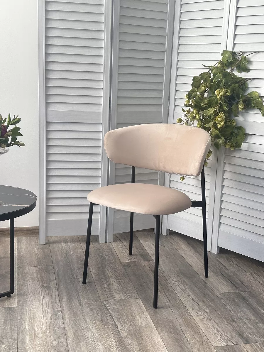 Стул ЛЕОНАРДО цвет H-06 Бежевый, велюр / черный каркас