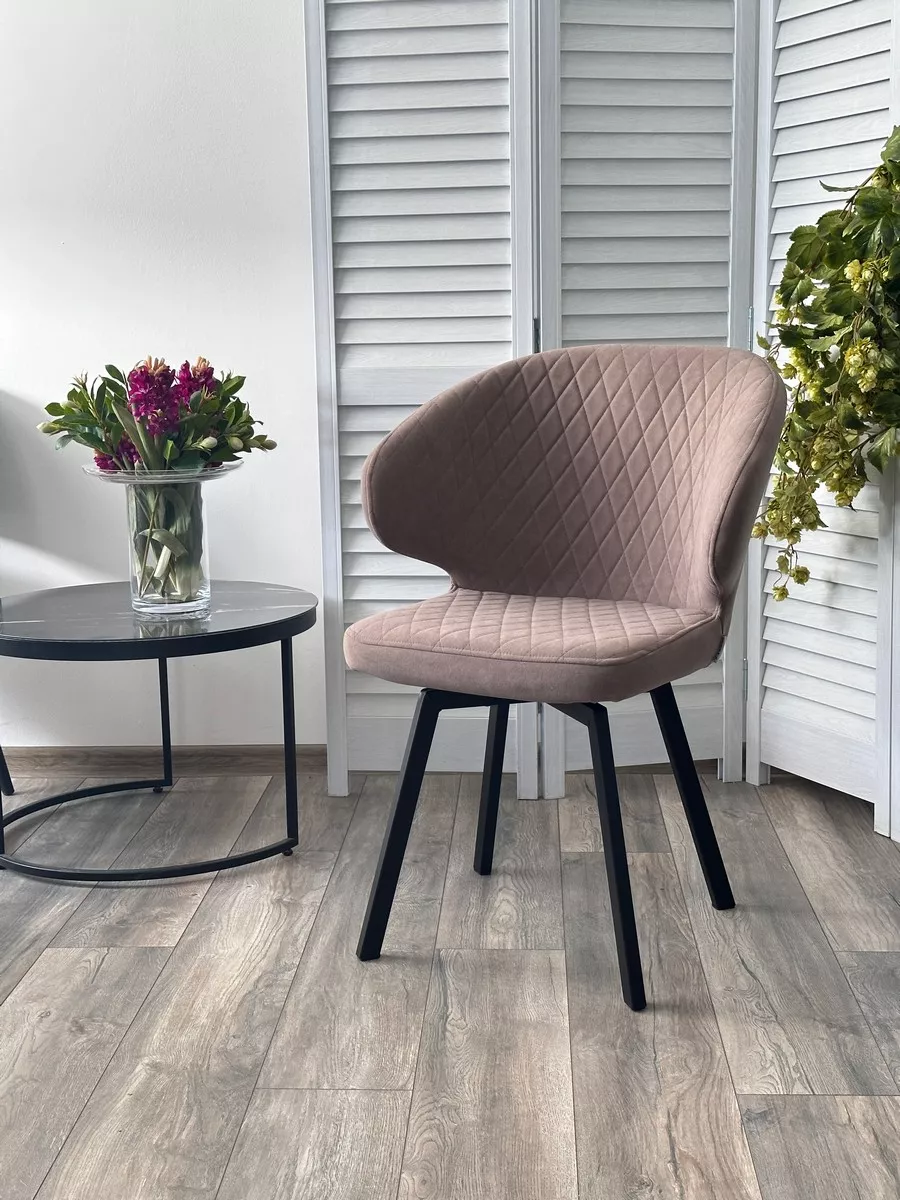 Стул ХИЛТОН 360 град., цвет B5 Капучино, велюр / черный каркас