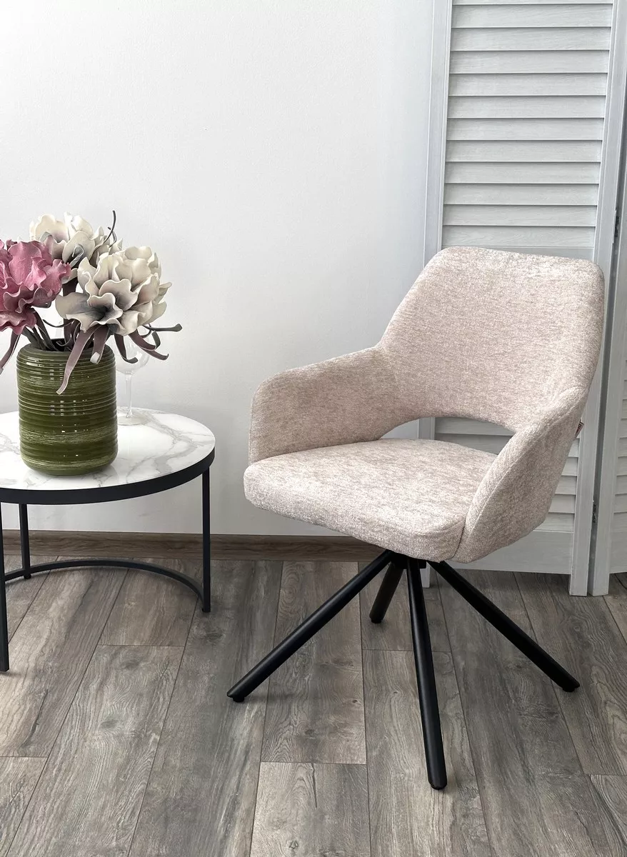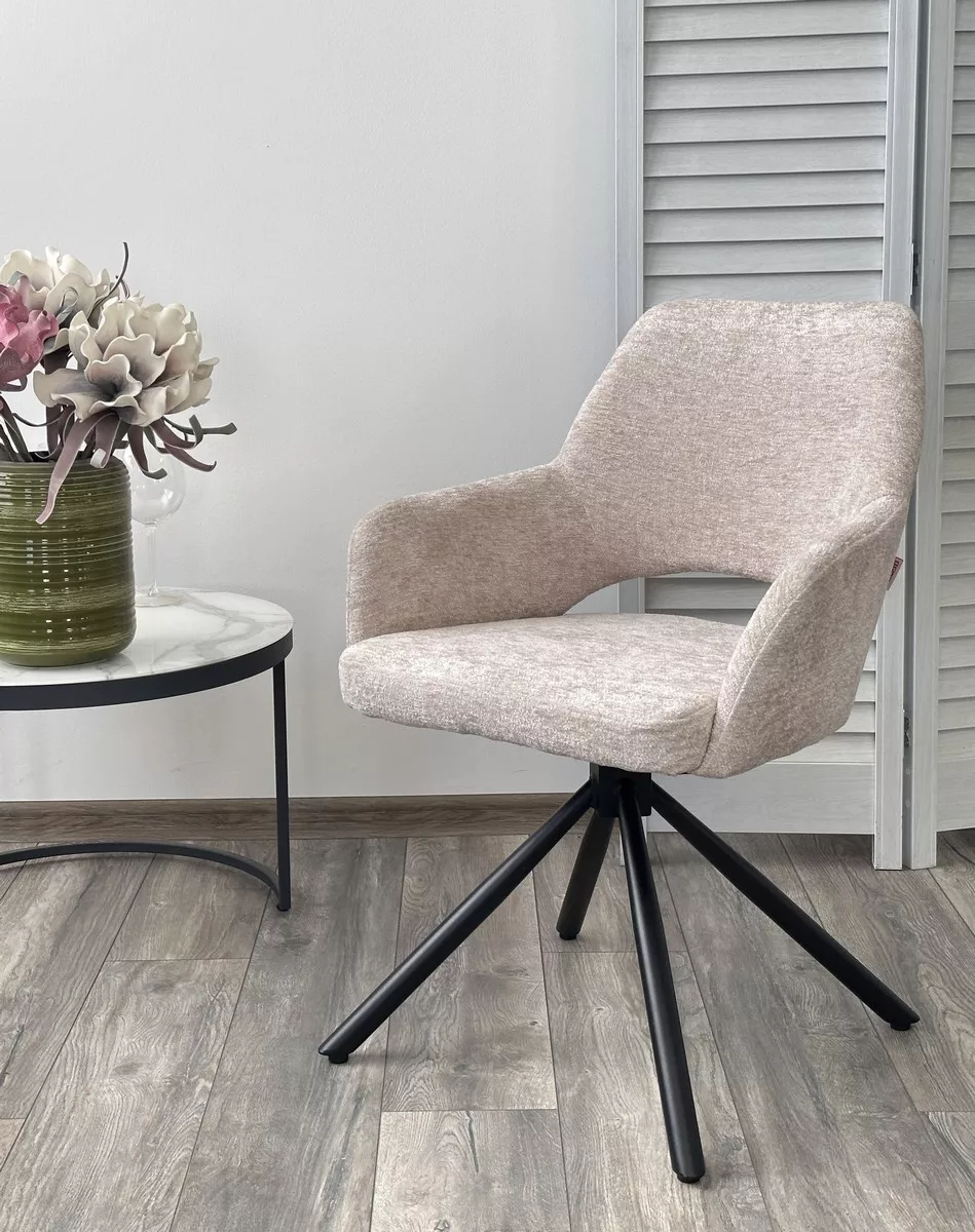 Стул НУРИ (NURI) 180 град. поворот. цвет 3018-10 бежевый, шенилл/ черный каркас, ®DISAUR