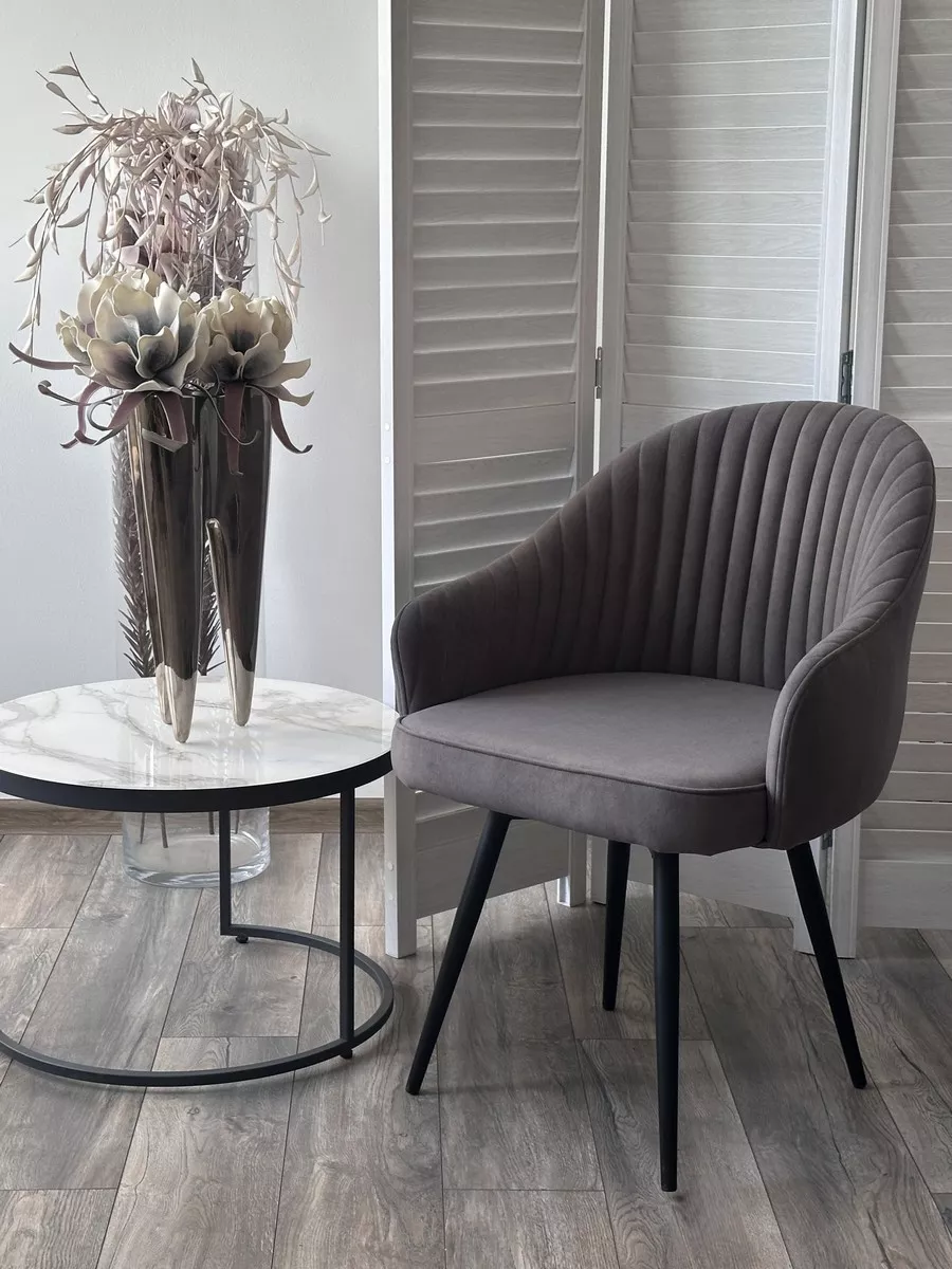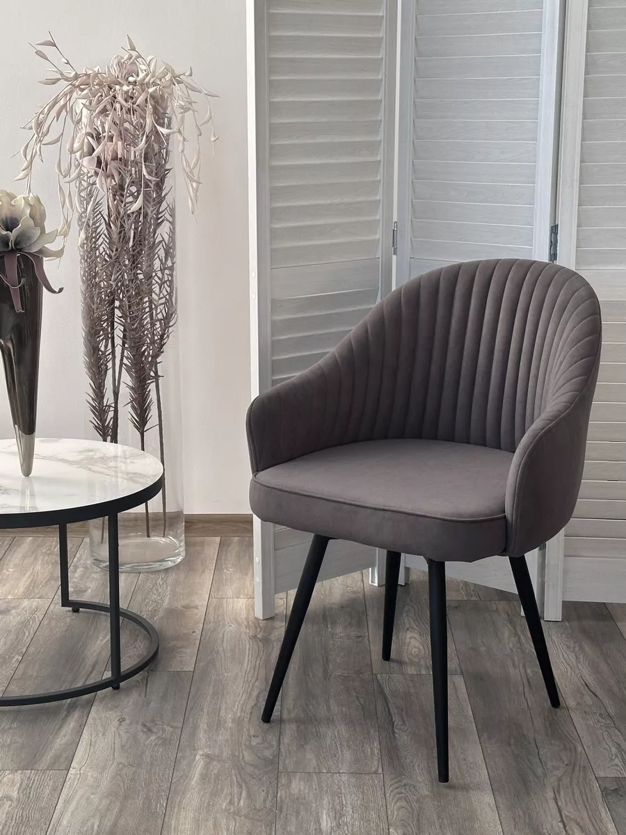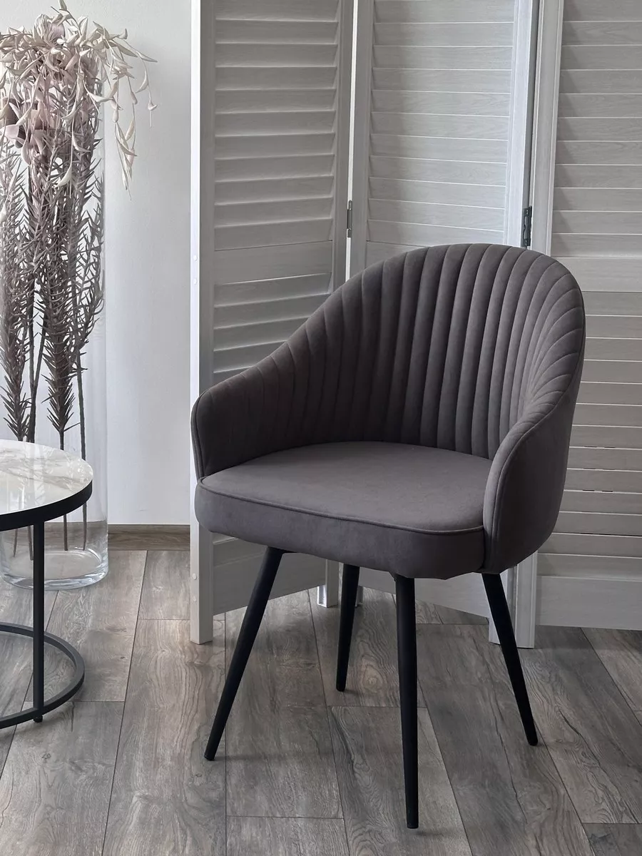 Стул ШЕЛЛ 360 град. поворот. цвет B28 Темно-серый, велюр / черный каркас